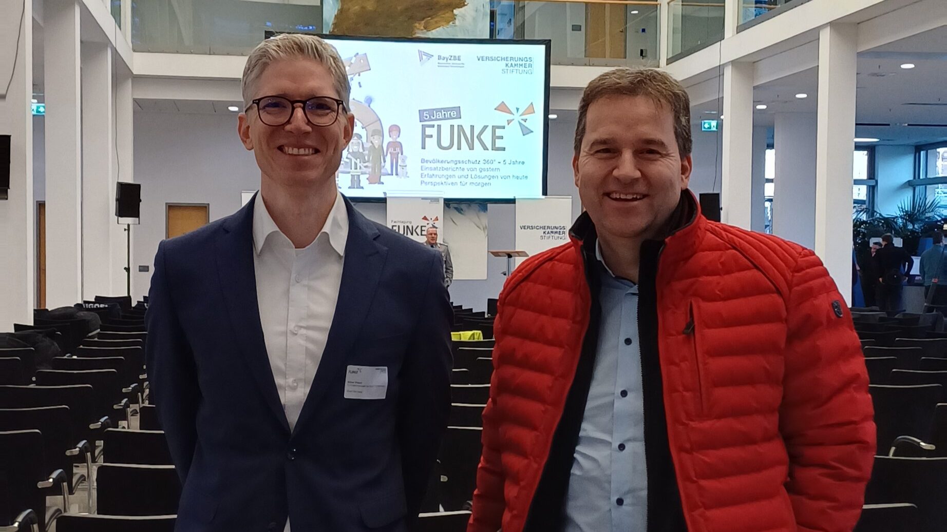Um dieses Projekt vorzustellen waren Volker Brand, Projektmanager, und Jochen Dürst, Projektinitiator, in München vor Ort. Ein Vortrag zum Innovativen Katastrophenschutz bot die ganz besondere Möglichkeit, die Themen Digitalisierung und Katastrophenschutz zusammen zu denken und Interessierten sich zu dem Projekt zu informieren.