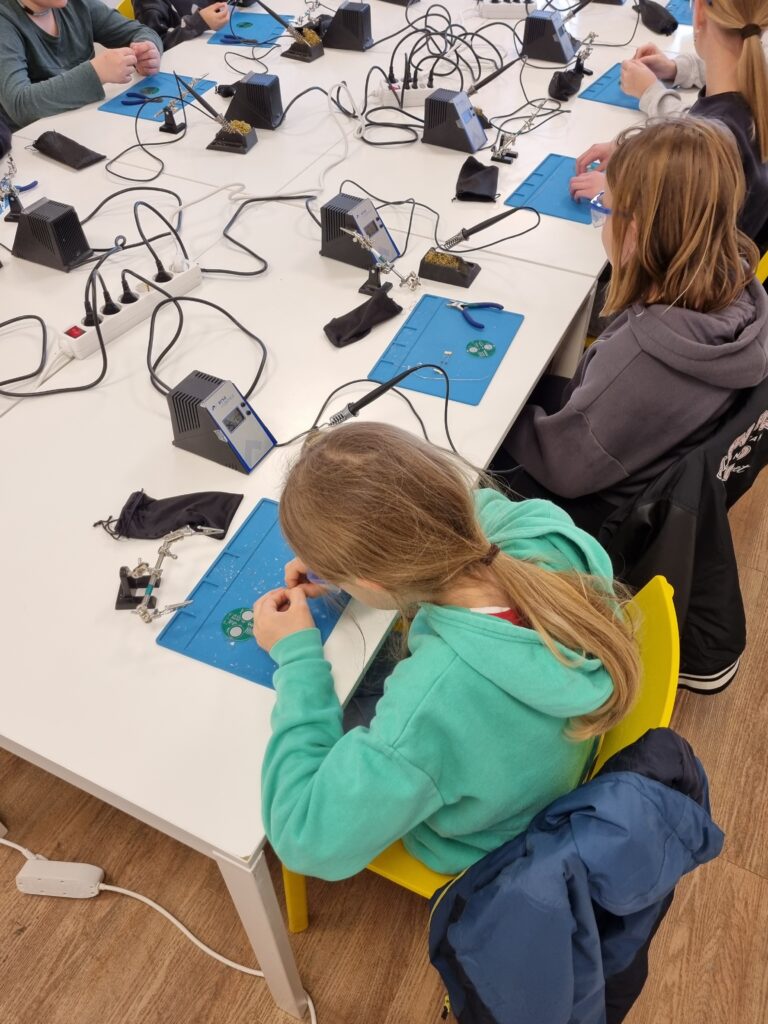 Auch der zweimal wöchentlich stattfindende Jugendtreff wurde mit digitalen Aktionen ausgestattet: So konnten die Kinder und Jugendlichen am Dienstag mit NEO e.V. LED-Kreisel löten und am Donnerstag mit Sebastian Magnus, Künstler aus Leipzig, individuelle Figuren sprayen und mit dem Handy und einer künstlichen Intelligenz zum Leben erwecken. Die Kinder und Jugendlichen erlebten somit hautnah, was Digitalisierung alles kann!