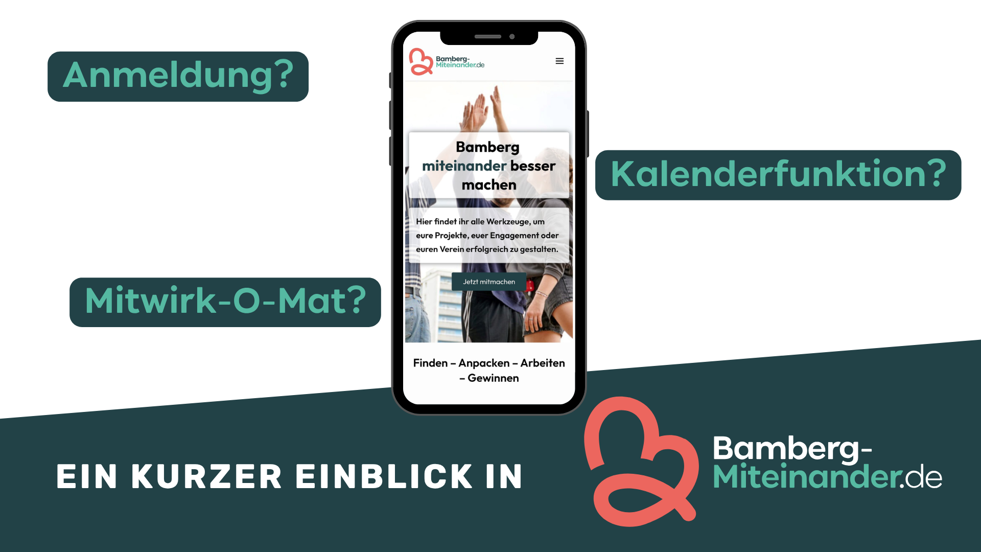 Unser neues Video gibt dir einen kurzen Einblick in die hilfreichsten Funktionen von Bamberg-Miteinander.de und zeigt, wie einfach es ist, sich zu engagieren oder Mitstreiterinnen für eigene Projekte zu finden.
