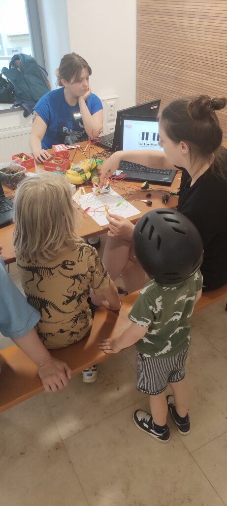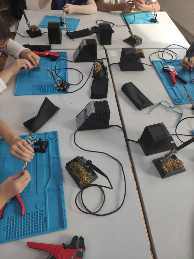 Der Tag begann mit zwei Workshops für Schüler:innen an der Pestalozzischule: Die jüngeren Jahrgangsstufen durften sich in einem Workshop mit Neo Bamberg im Bereich Technik austoben. Dabei konnten erste Erfahrungen im Löten gemacht werden und die Kinder haben gelernt, welche Möglichkeiten sich daraus ergeben und das digitales Experimentieren ganz schön Spaß macht!