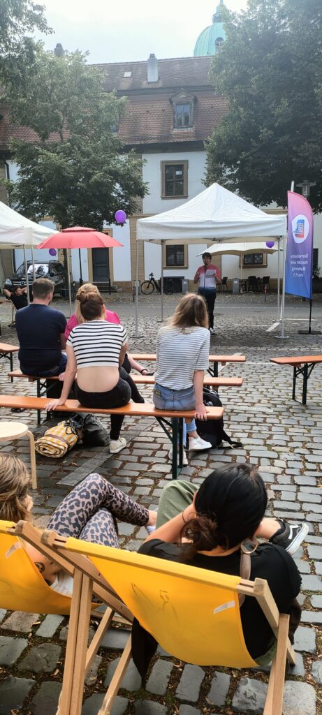 Der Tag wurde durch einen Poetry Slam zum Thema Digitalisierung abgeschlossen. Open Air an der Nördlichen Promenade konnten sich die Bamberger:innen von vier Künstler:innen Texte anhören und bewerten – manche kritisch, manche lustig, manche nachdenklich. Auf jeden Fall ein toller Abschluss für einen bunten Tag!